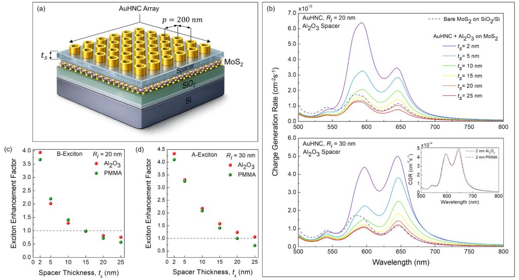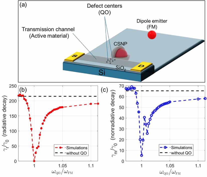 We numerically and experimentally analyze light matter interactions between low dimensional materials and closely located plasmonic structures giving rise to quantum phenomena such as charge generation rate, fluorescence enhancement, Förster Resonant Energy Transfer (FRET) and Fano Resonance.